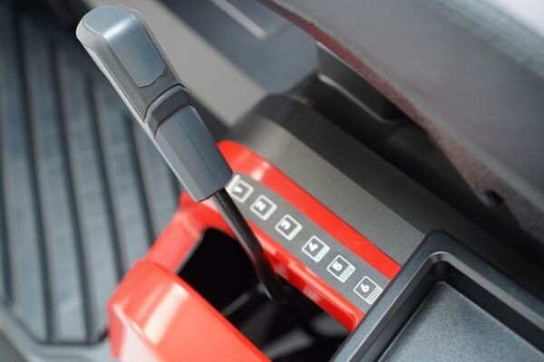 Sie manövrieren mühelos um Bäume, Beete und andere Hindernisse. Das hydrostatische Getriebe sorgt für eine stufenlose und präzise Steuerung, während der Hinterradantrieb Ihnen die nötige Traktion verleiht, um auch auf unebenem Gelände souverän zu arbeiten.