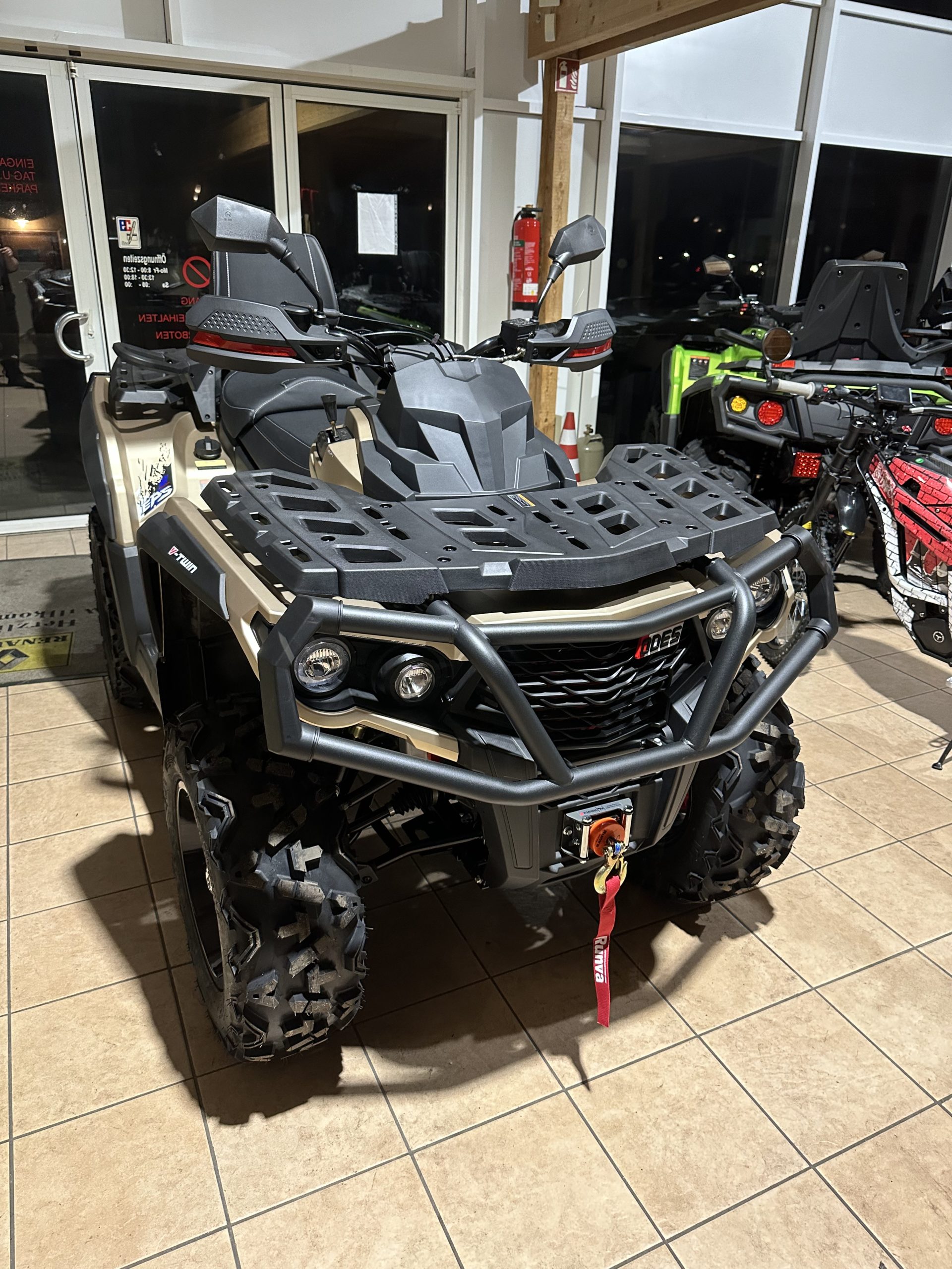Das Fahrwerk mit Einzelradaufhängung und die hydraulischen Scheibenbremsen gewährleisten eine gute Handhabung und Bremsleistung. Der Tankinhalt beträgt 22 Liter, und der ODES Pathcross Max 800 hat einen langen Radstand für Stabilität und Komfort.