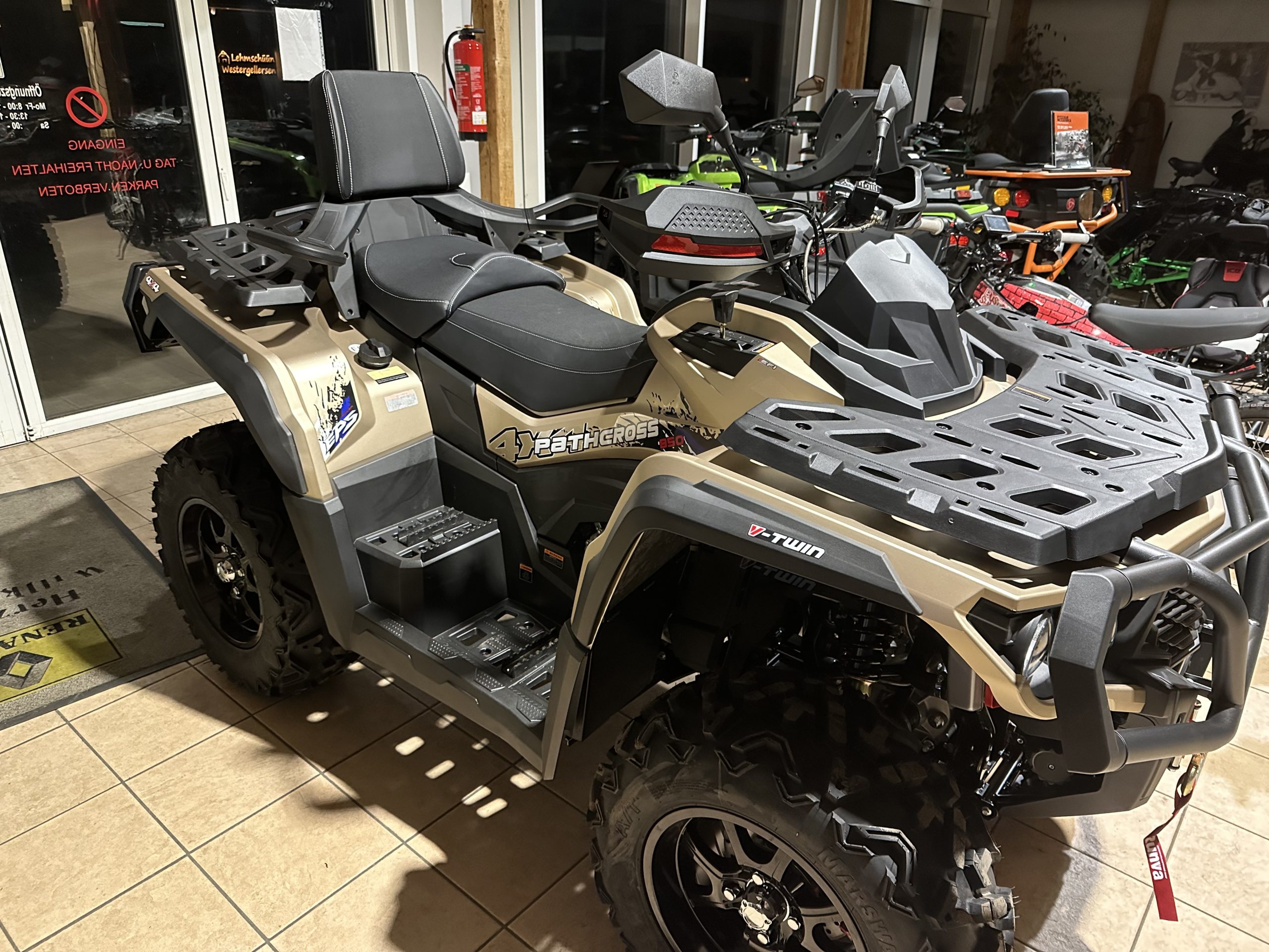 - Bereifung: 26×9-14 vorne, 26×11-14 hinten (Reifengröße)