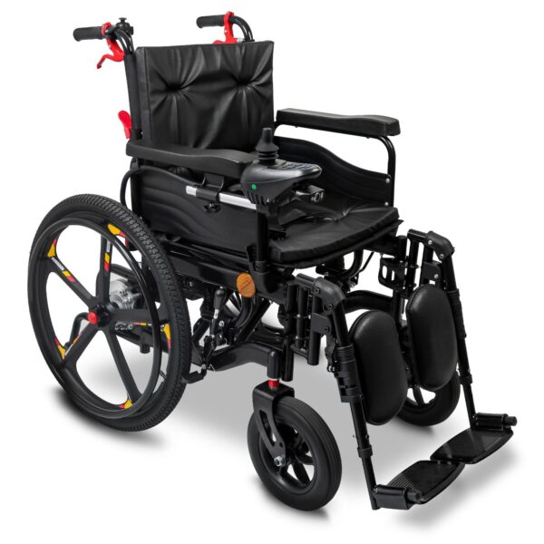 Zwei 250-Watt-Motoren sorgen für eine solide Leistung und ermöglichen eine maximale Geschwindigkeit von bis zu 6 km/h. Der Rollstuhl verfügt über einen dualen Antriebsmodus, der sowohl elektrischen als auch manuellen Betrieb erlaubt. So haben Sie immer die Kontrolle, egal ob Sie selbst fahren oder geschoben werden.