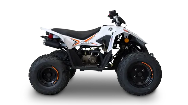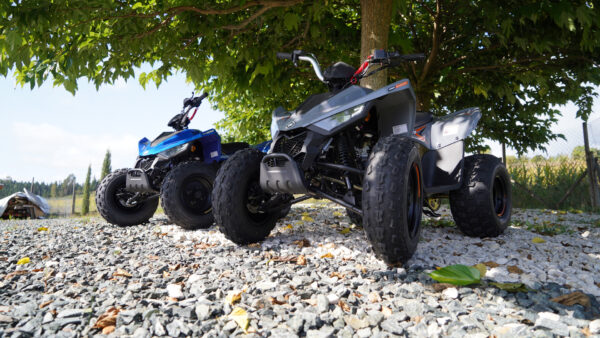 Die Dual-A-Arm-Aufhängung vorne und die Schwinge hinten sorgen für echte ATV-Dynamik. Stabil, sportlich und kontrollierbar – so macht Offroad fahren Spaß, auch in jungem Alter